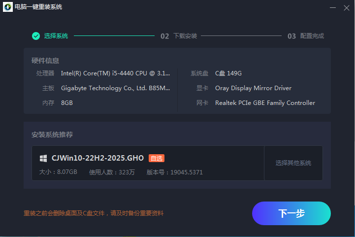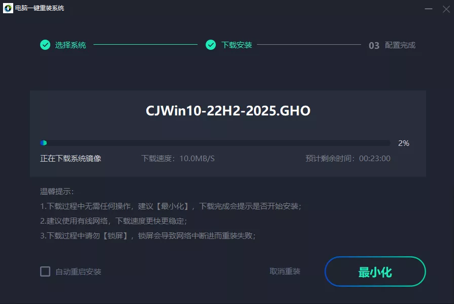 自动备份驱动,高速下载系统文件,只需要稍等片刻