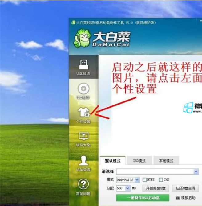 (1)启动电脑店PE工具后点击个性化设置,如图: